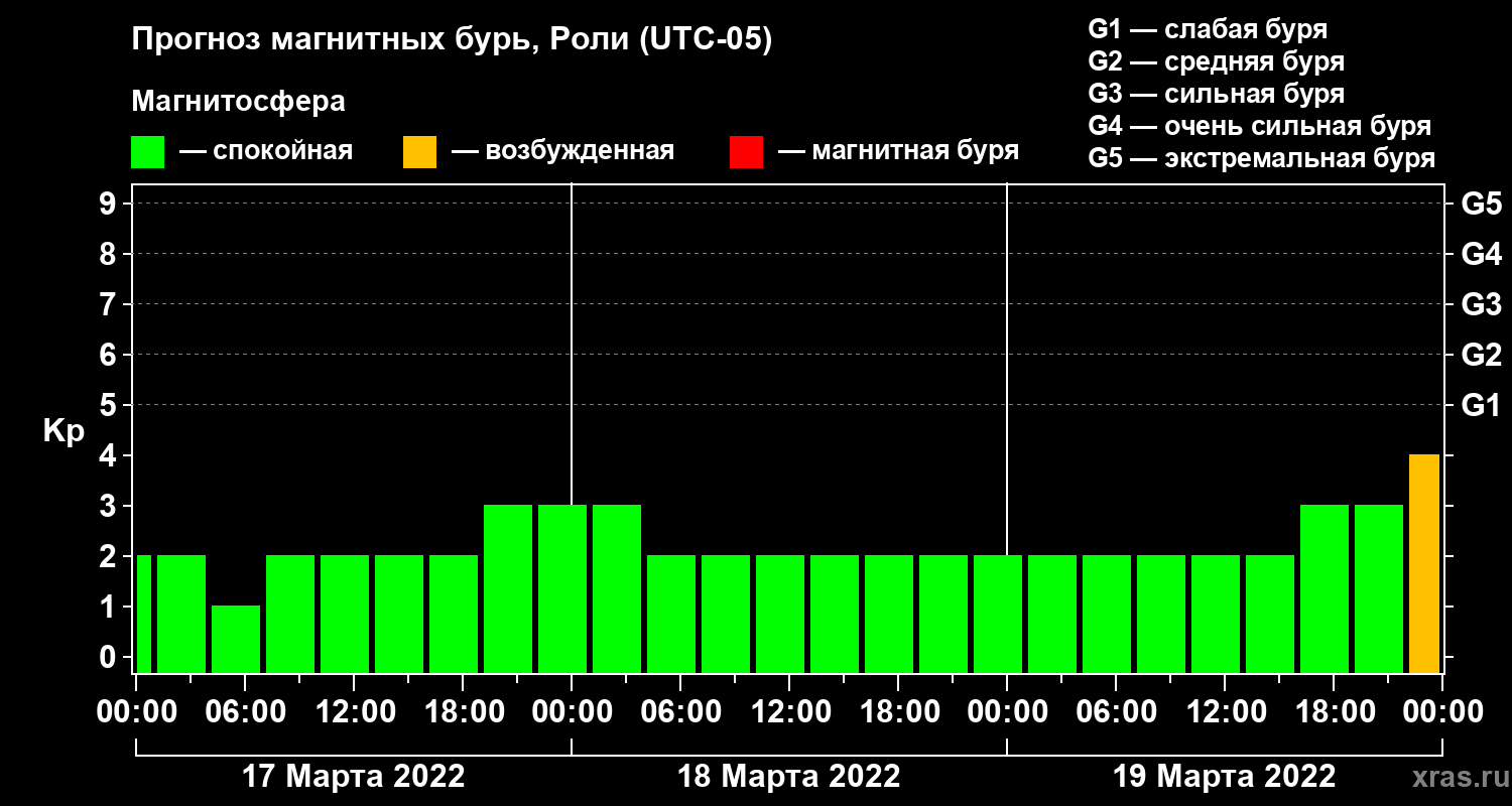 Прогноз магнитных бурь Роли на 17 марта 2022 года