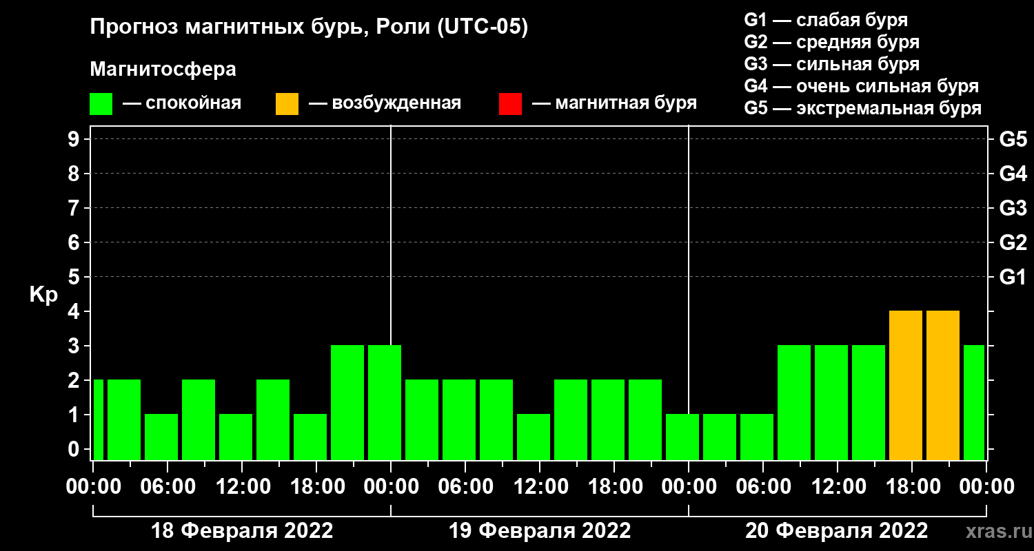 Прогноз магнитных бурь Роли — 18 февраля 2022 года