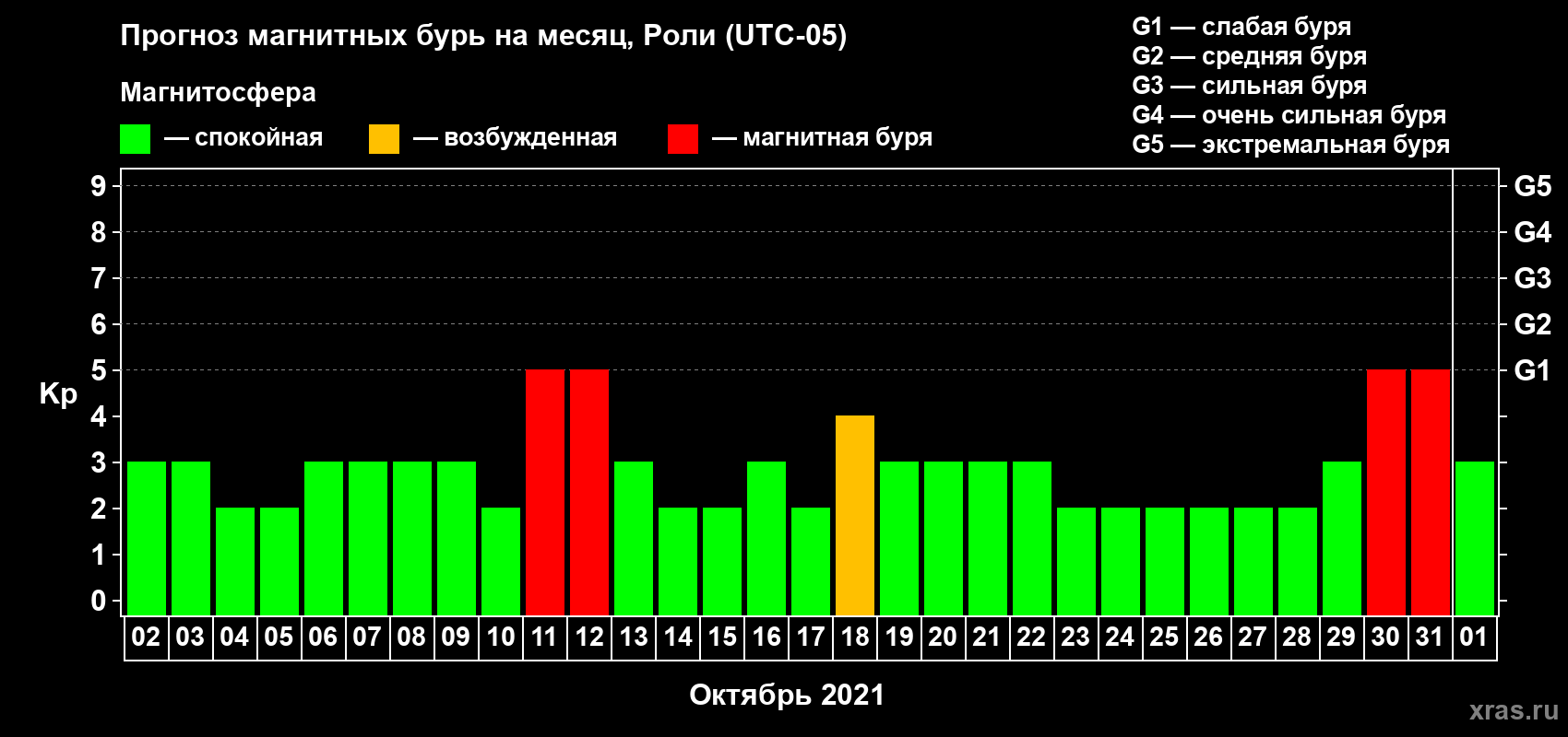 Прогноз магнитных бурь Роли — 2 октября 2021 года