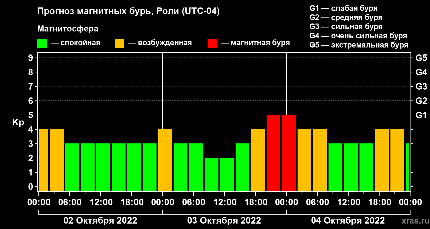 Прогноз магнитных бурь Роли — 2 октября 2022 года