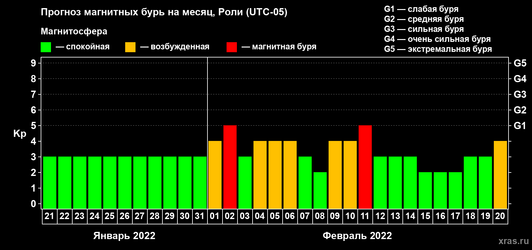 Прогноз магнитных бурь Роли — 21 января 2022 года