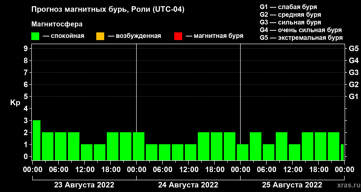 Прогноз магнитных бурь Роли — 23 августа 2022 года