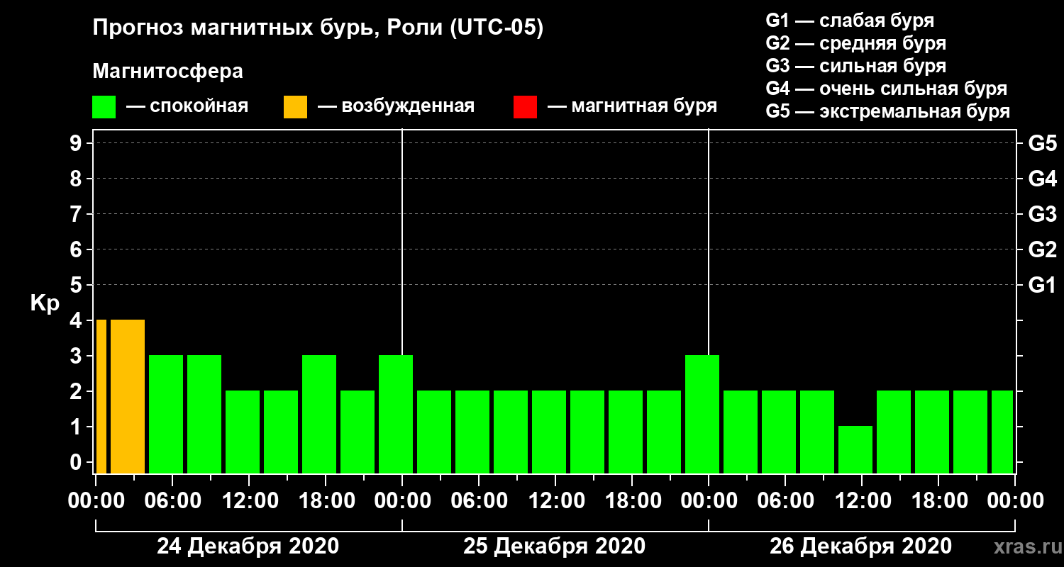 Прогноз магнитных бурь Роли — 24 декабря 2020 года