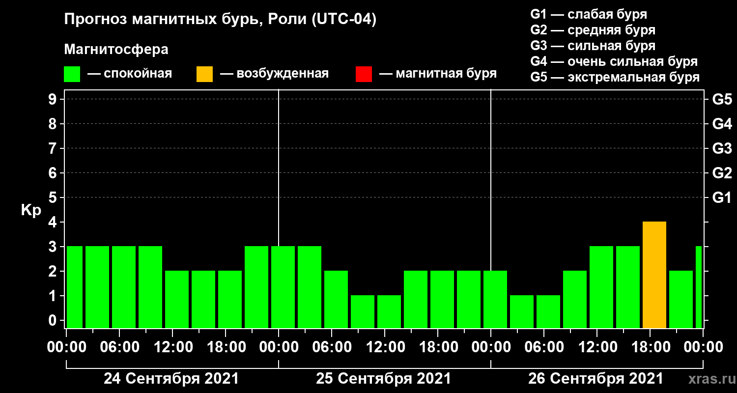 Прогноз магнитных бурь Роли — 24 сентября 2021 года