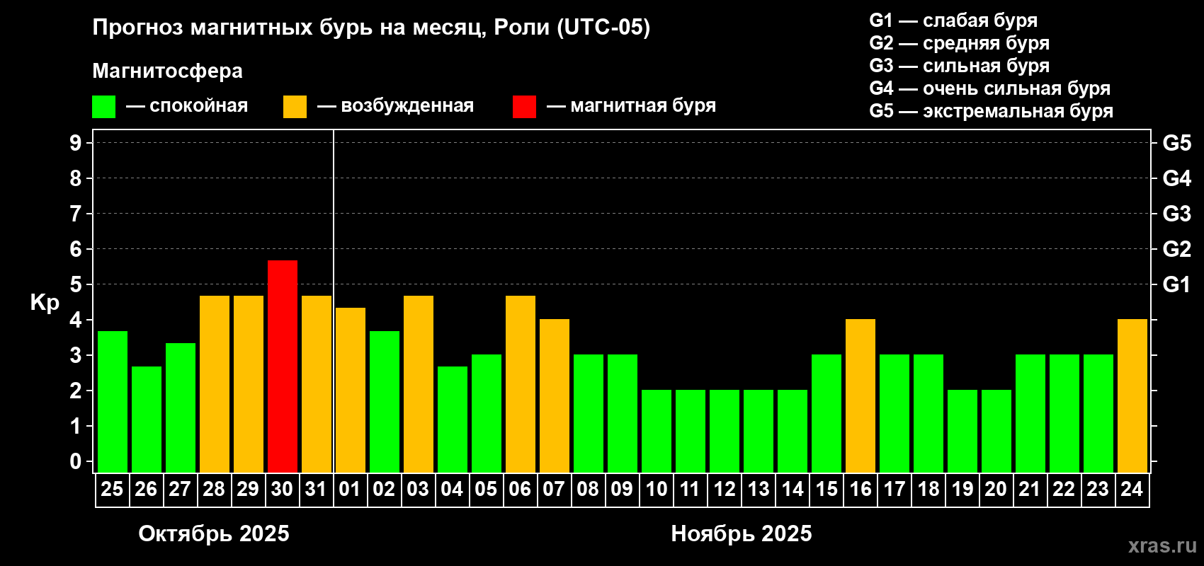 Прогноз магнитных бурь Роли на 25 октября 2025 года