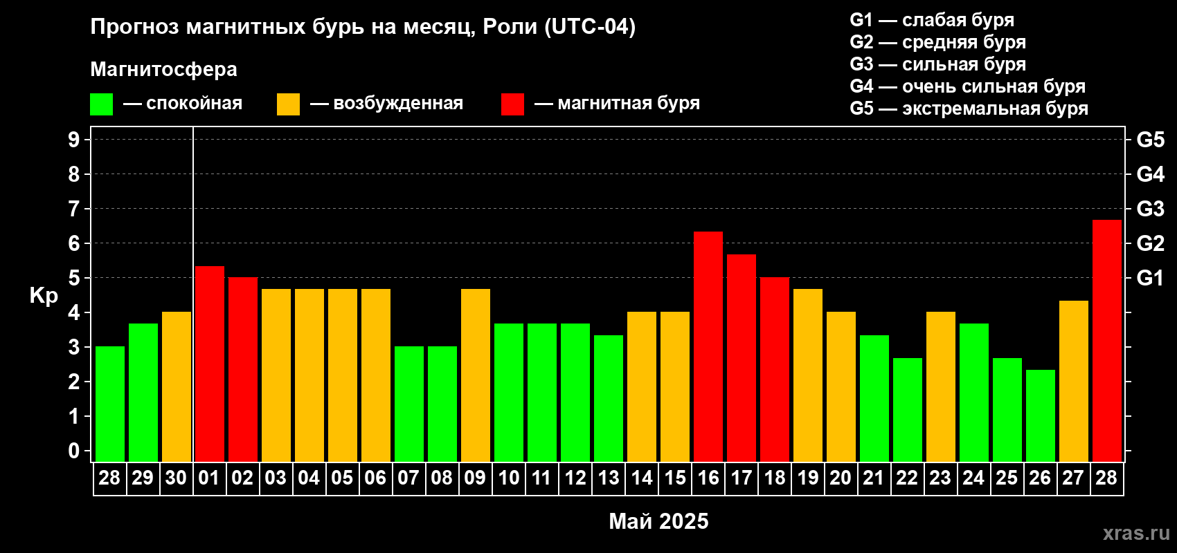 Прогноз магнитных бурь Роли на 28 апреля 2025 года
