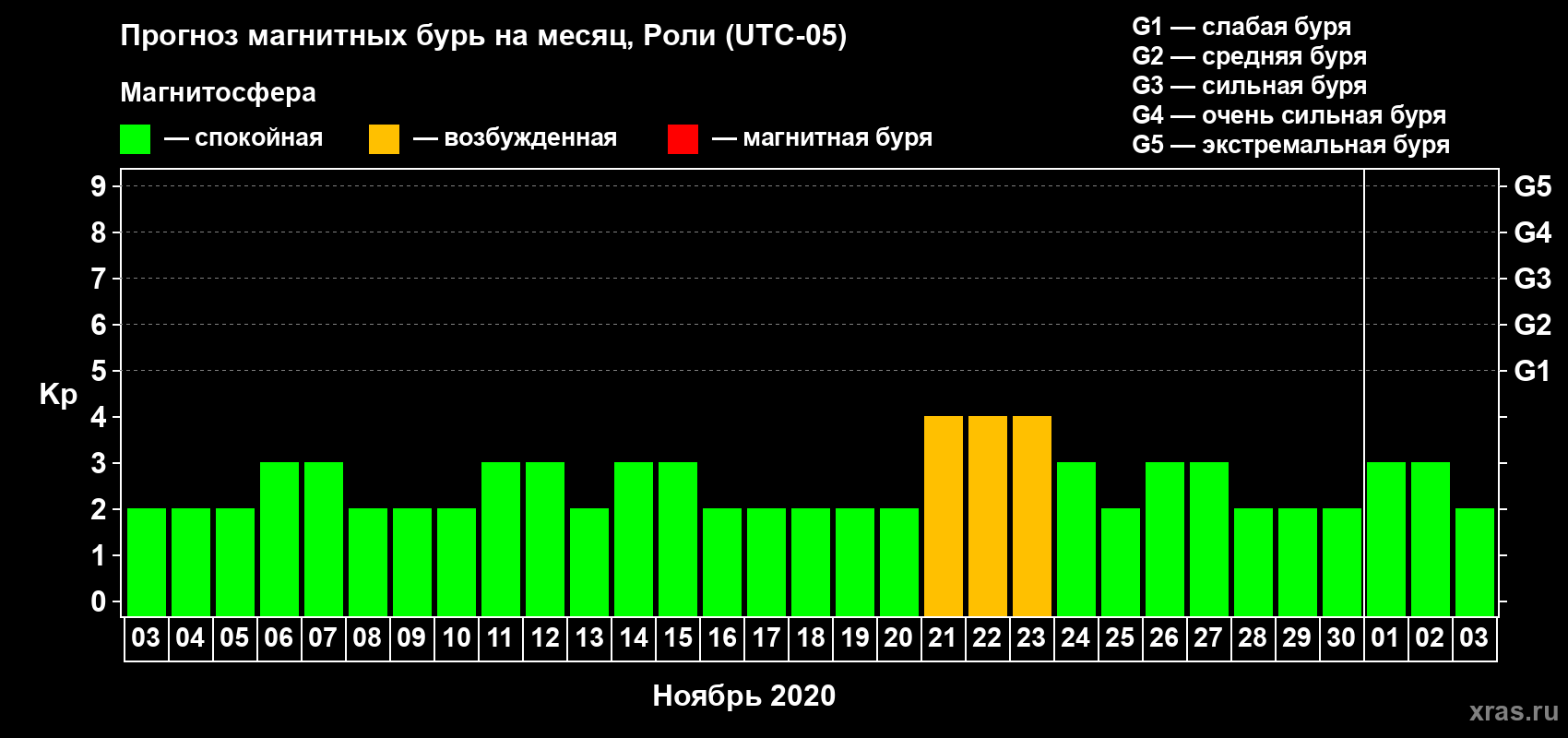 Прогноз магнитных бурь Роли — 3 ноября 2020 года