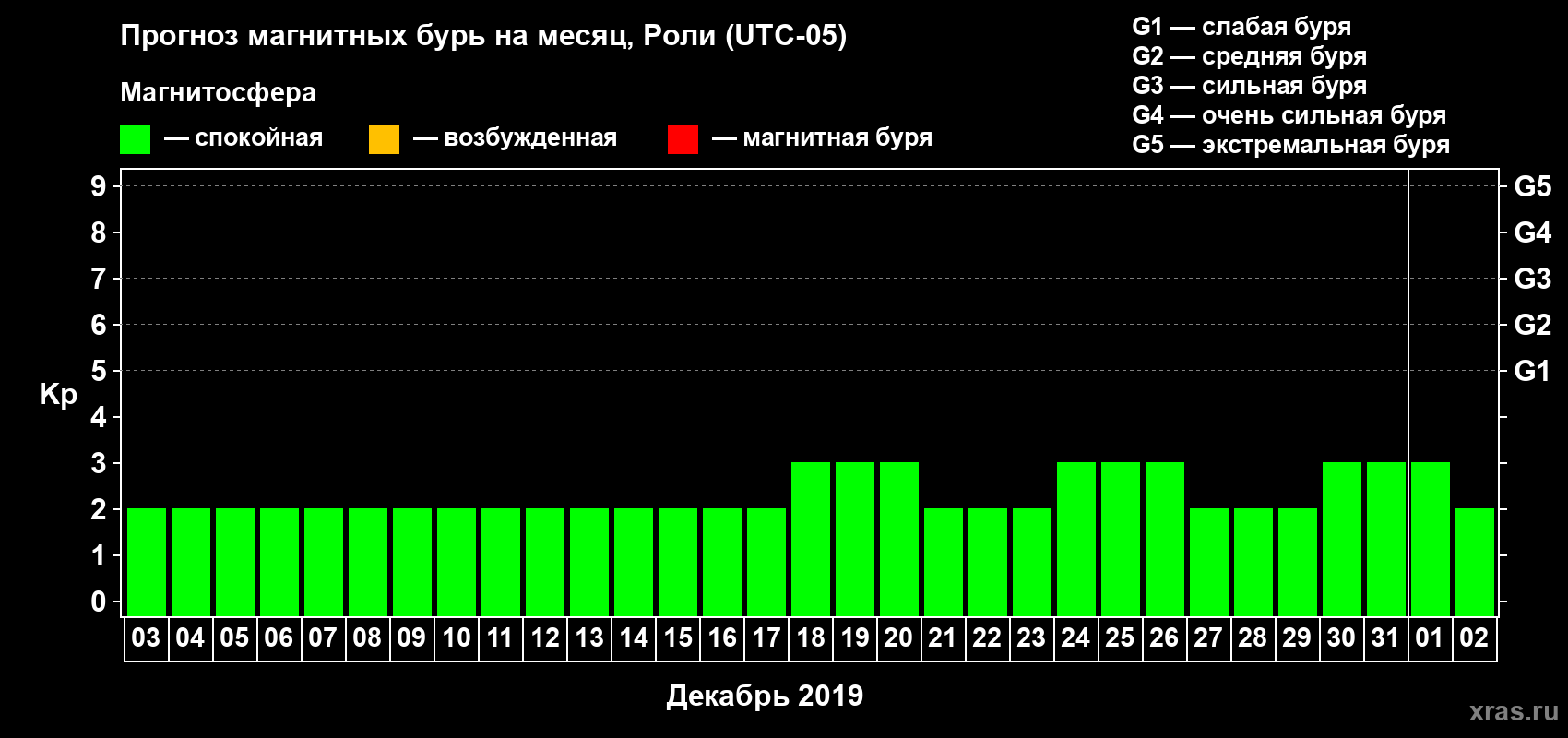 Прогноз магнитных бурь Роли — 3 декабря 2019 года