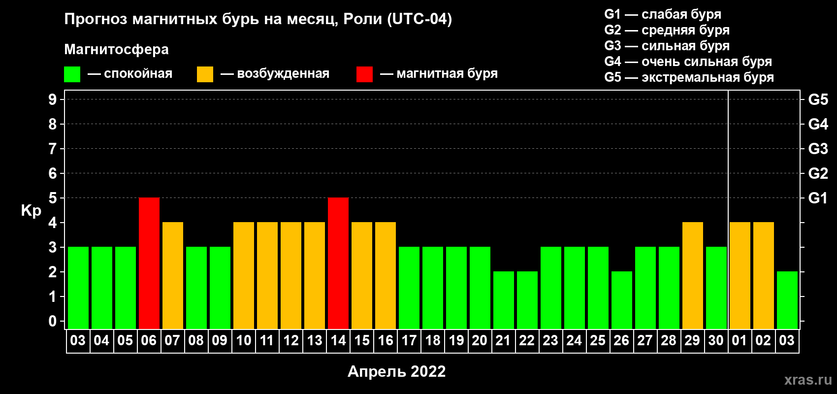 Прогноз магнитных бурь Роли — 3 апреля 2022 года