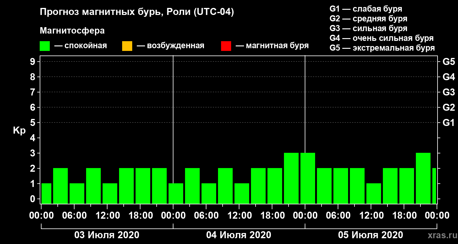 Прогноз магнитных бурь Роли на 3 июля 2020 года