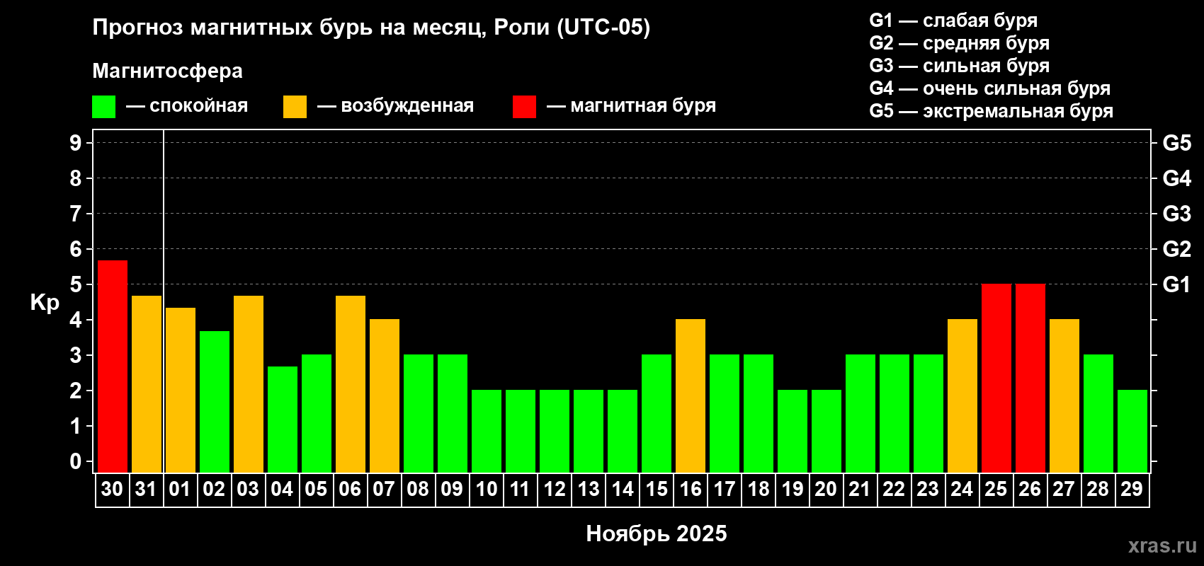 Прогноз магнитных бурь Роли — 30 октября 2025 года