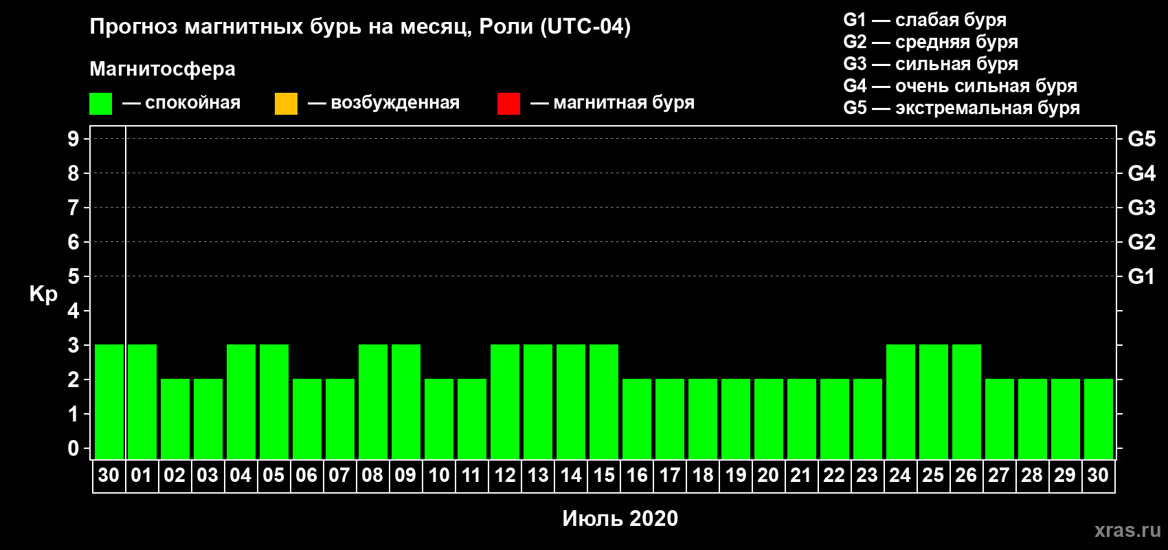 Прогноз магнитных бурь Роли — 30 июня 2020 года