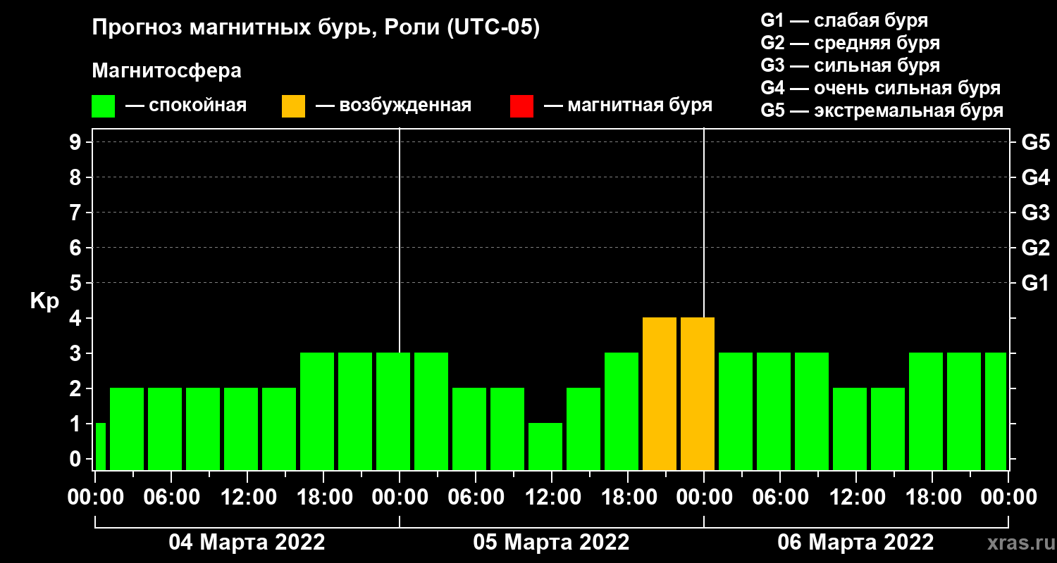 Прогноз магнитных бурь Роли — 4 марта 2022 года