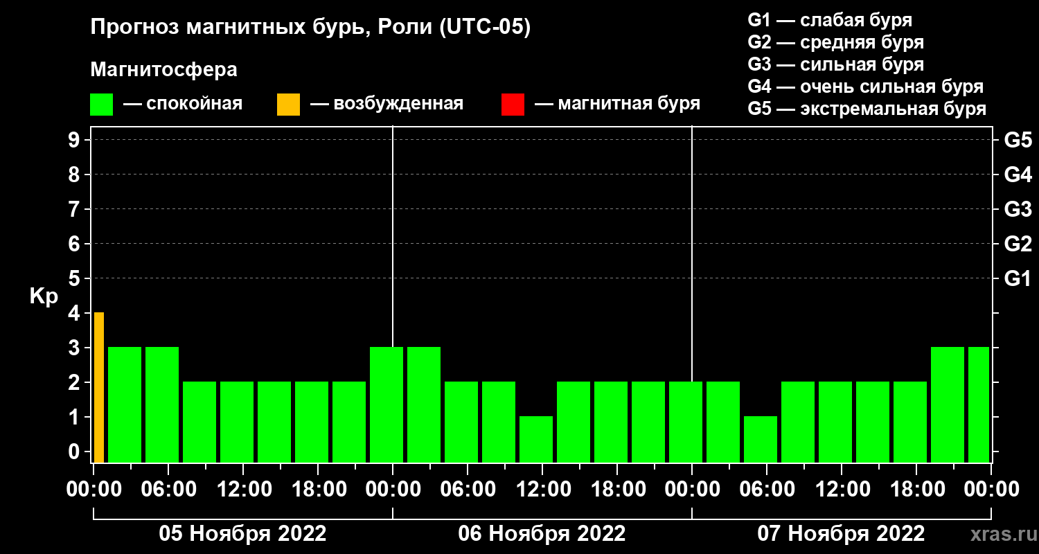 Прогноз магнитных бурь Роли — 5 ноября 2022 года
