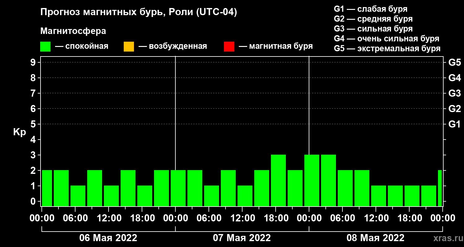 Прогноз магнитных бурь Роли — 6 мая 2022 года