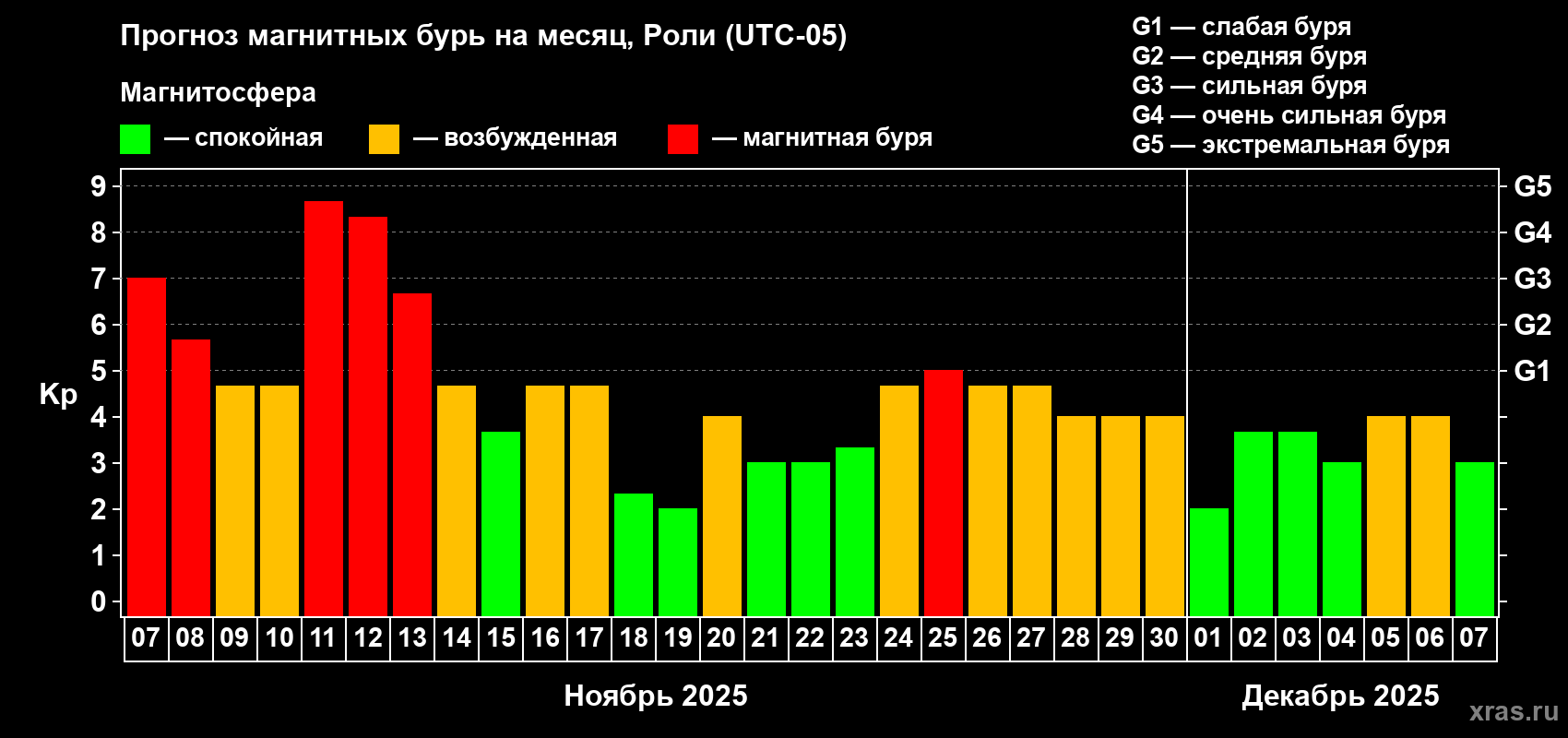 Прогноз магнитных бурь Роли — 7 ноября 2025 года