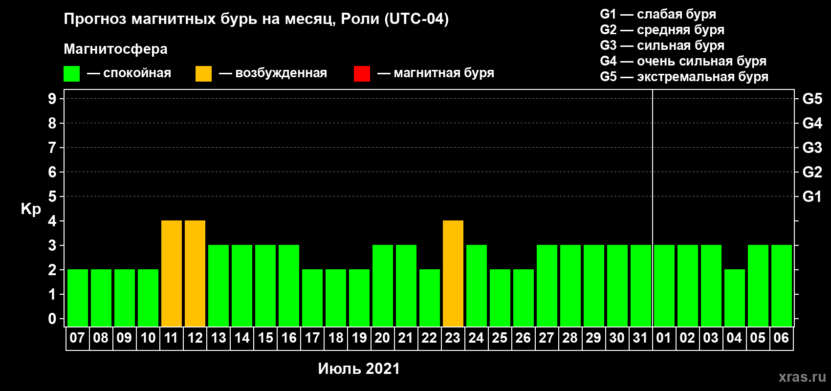Прогноз магнитных бурь Роли — 7 июля 2021 года