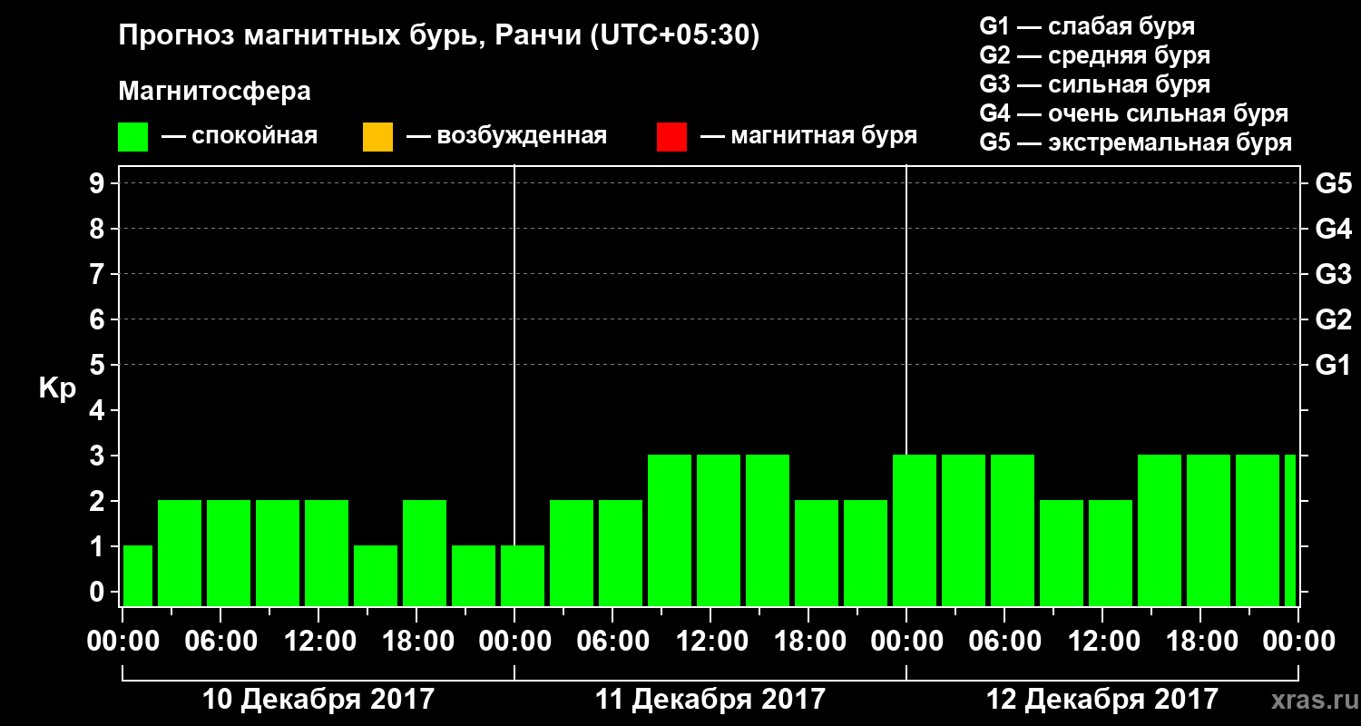 Прогноз магнитных бурь Ранчи — 10 декабря 2017 года