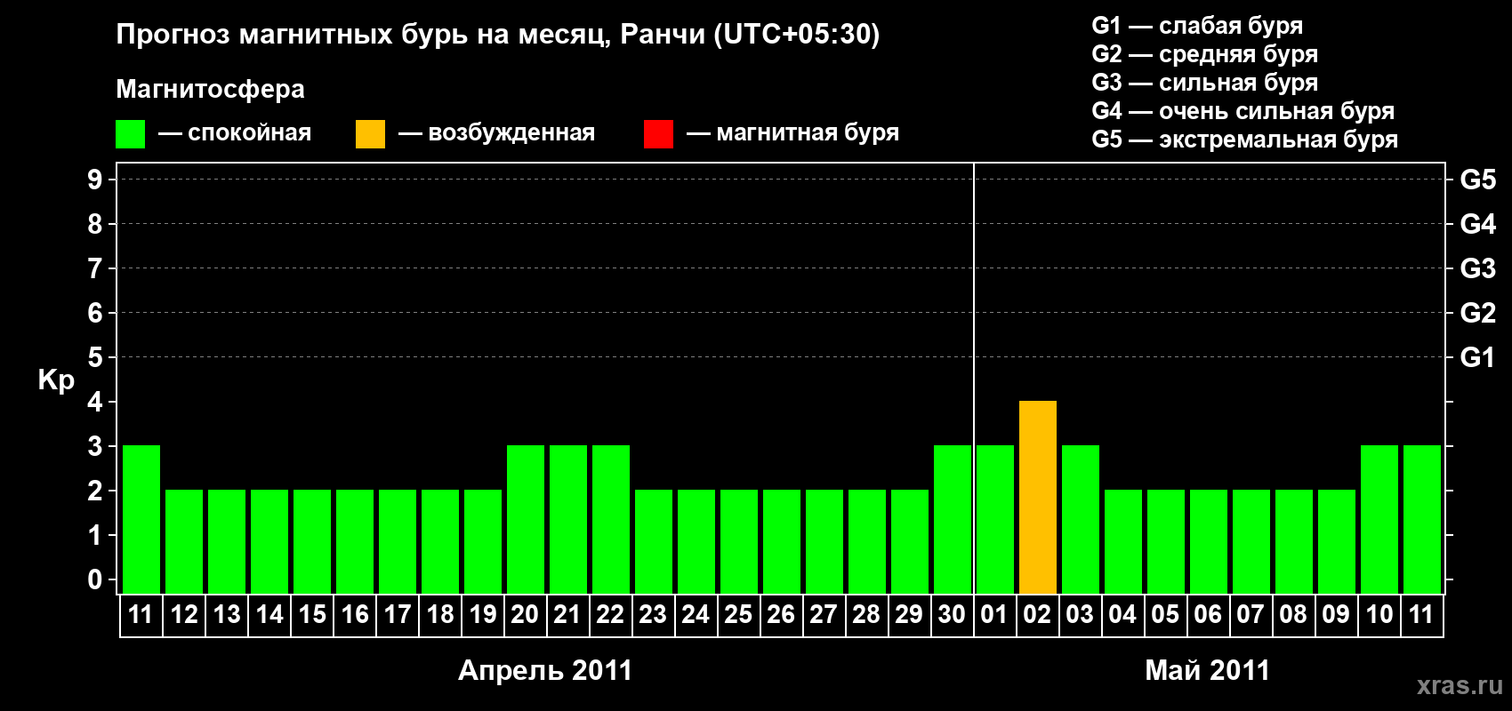 Прогноз магнитных бурь Ранчи — 11 апреля 2011 года