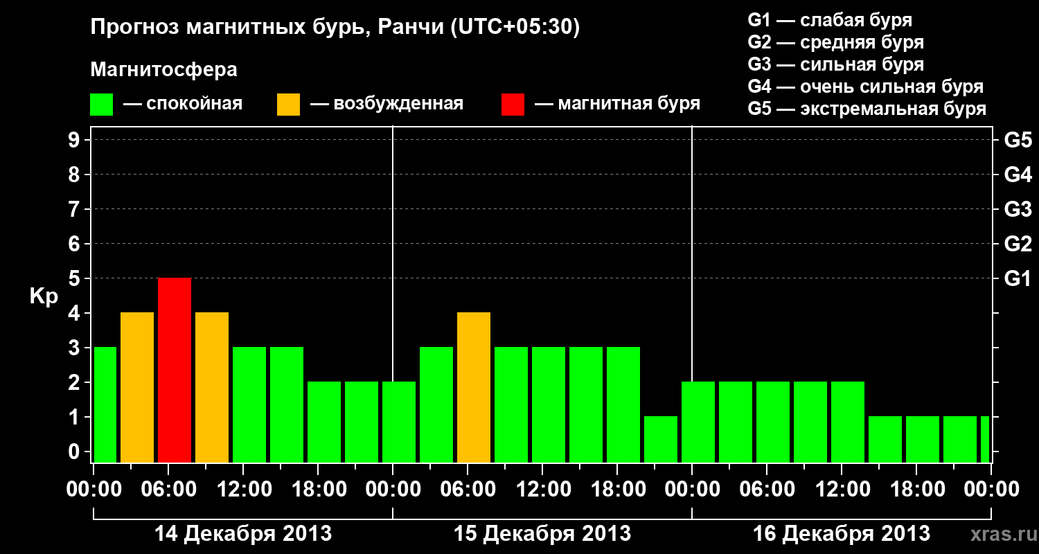 Прогноз магнитных бурь Ранчи — 14 декабря 2013 года
