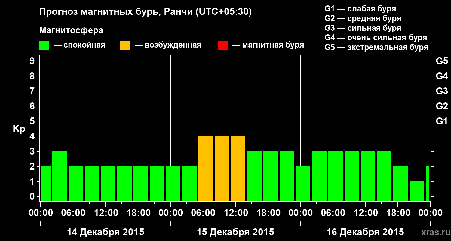 Прогноз магнитных бурь Ранчи — 14 декабря 2015 года