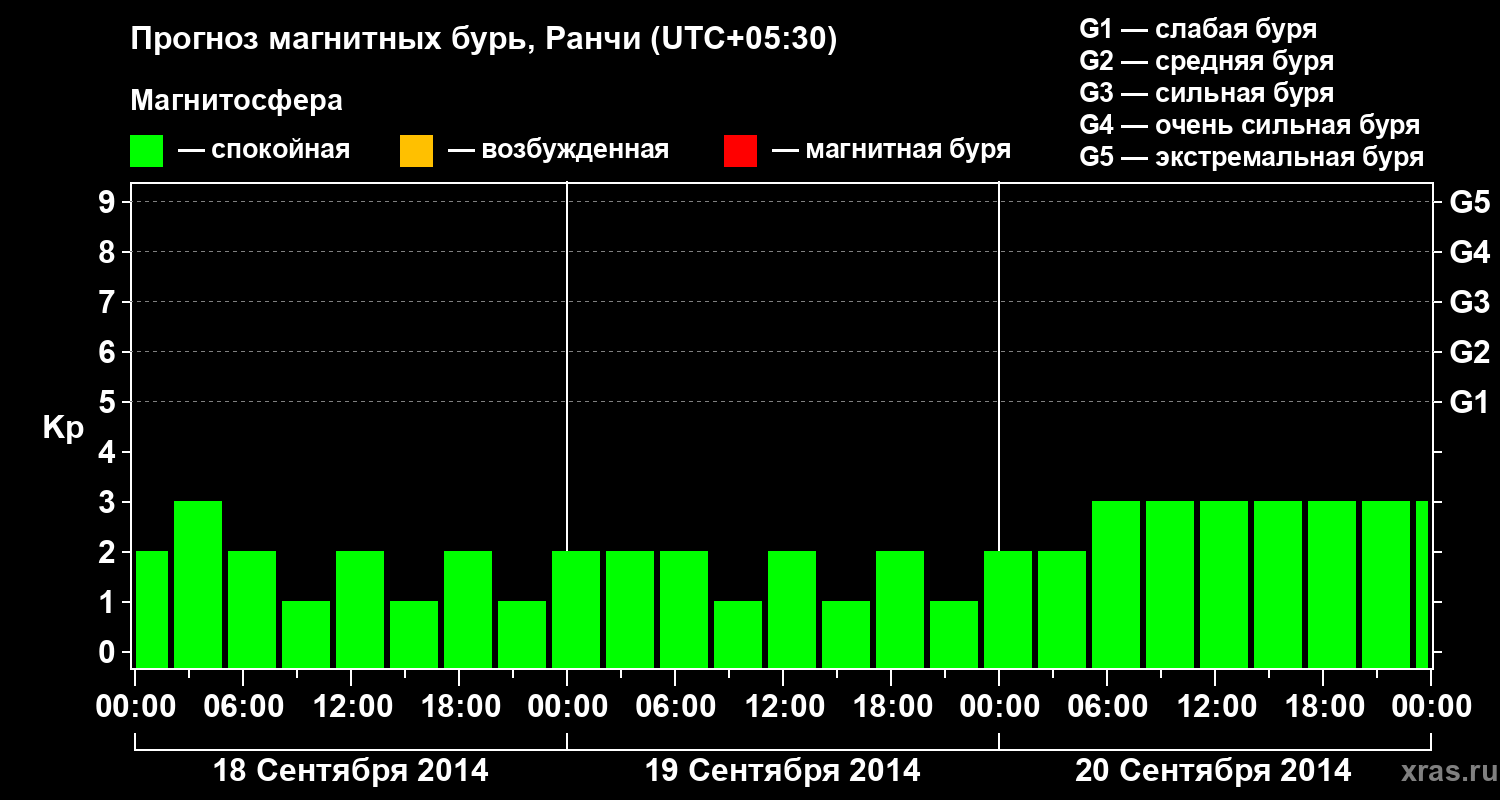 Прогноз магнитных бурь Ранчи — 18 сентября 2014 года