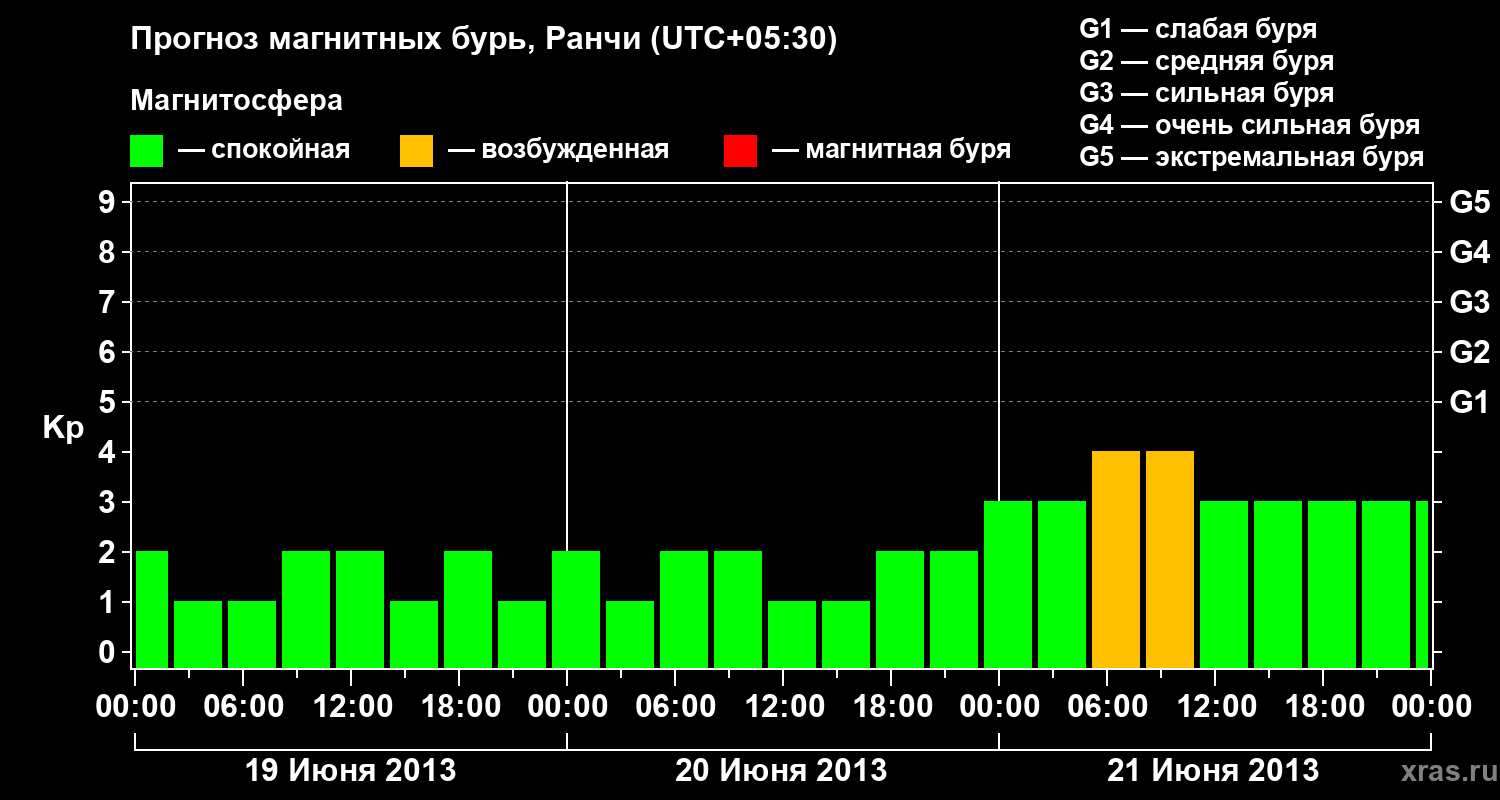 Прогноз магнитных бурь Ранчи — 19 июня 2013 года