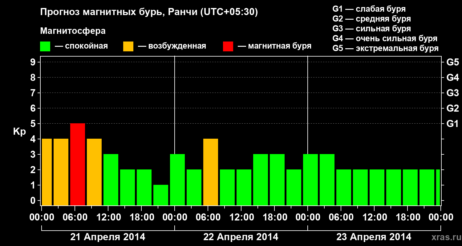 Прогноз магнитных бурь Ранчи на 21 апреля 2014 года