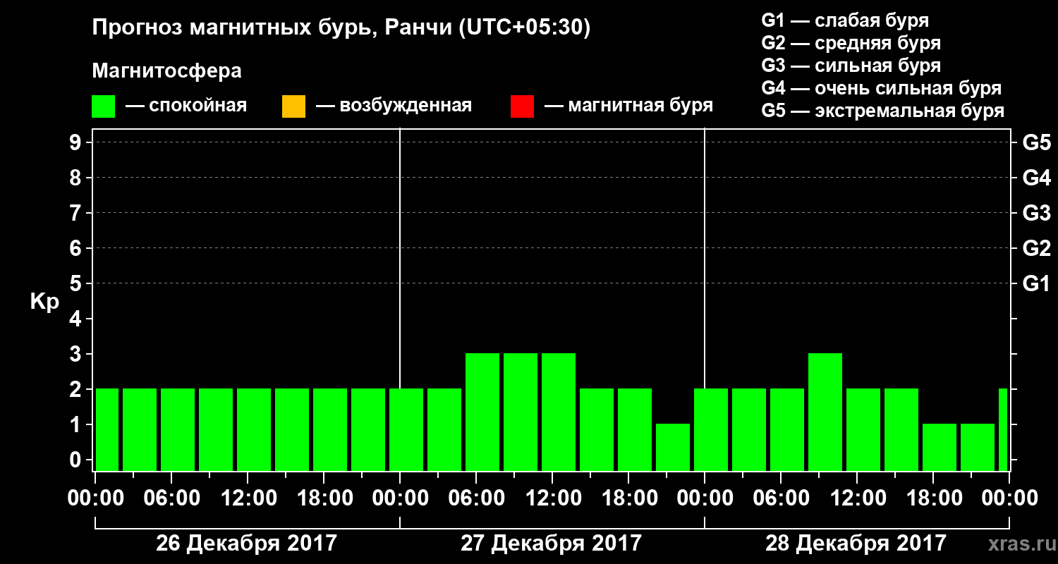 Прогноз магнитных бурь Ранчи — 26 декабря 2017 года