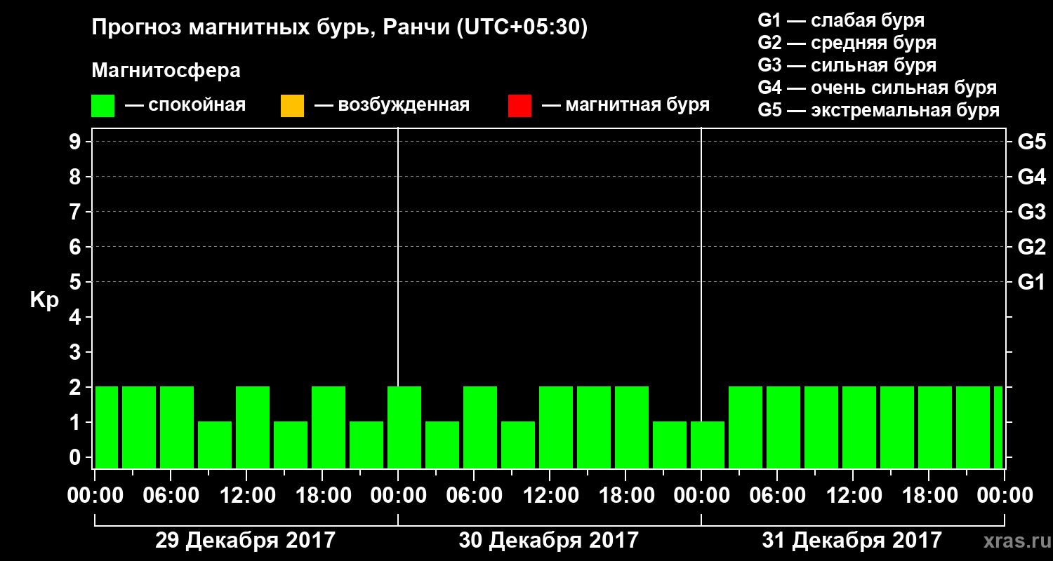 Прогноз магнитных бурь Ранчи — 29 декабря 2017 года
