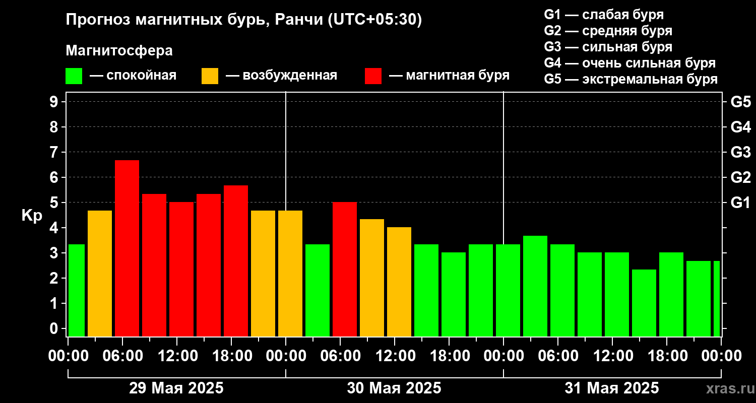 Прогноз магнитных бурь Ранчи — 29 мая 2025 года