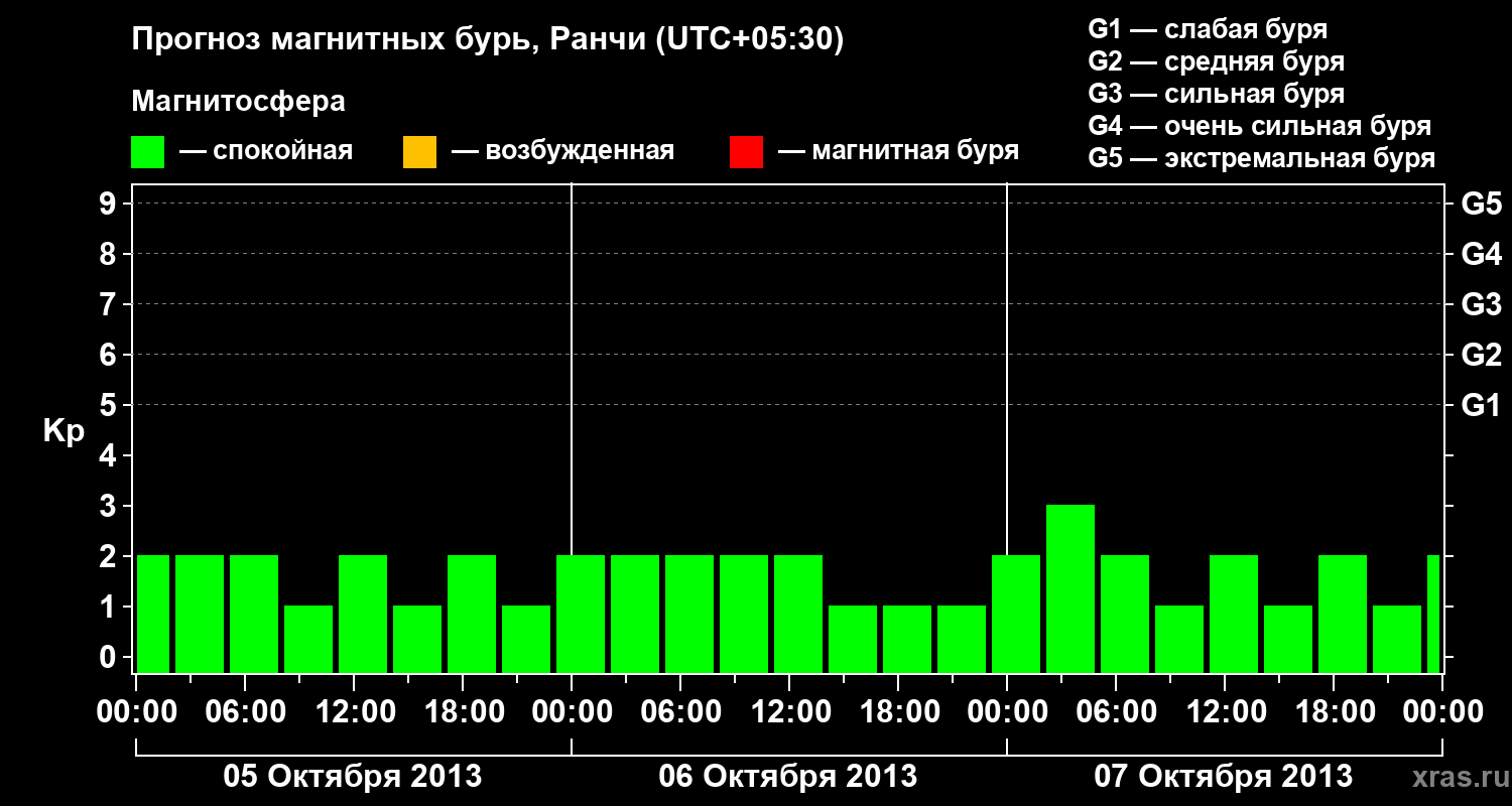 Прогноз магнитных бурь Ранчи — 5 октября 2013 года