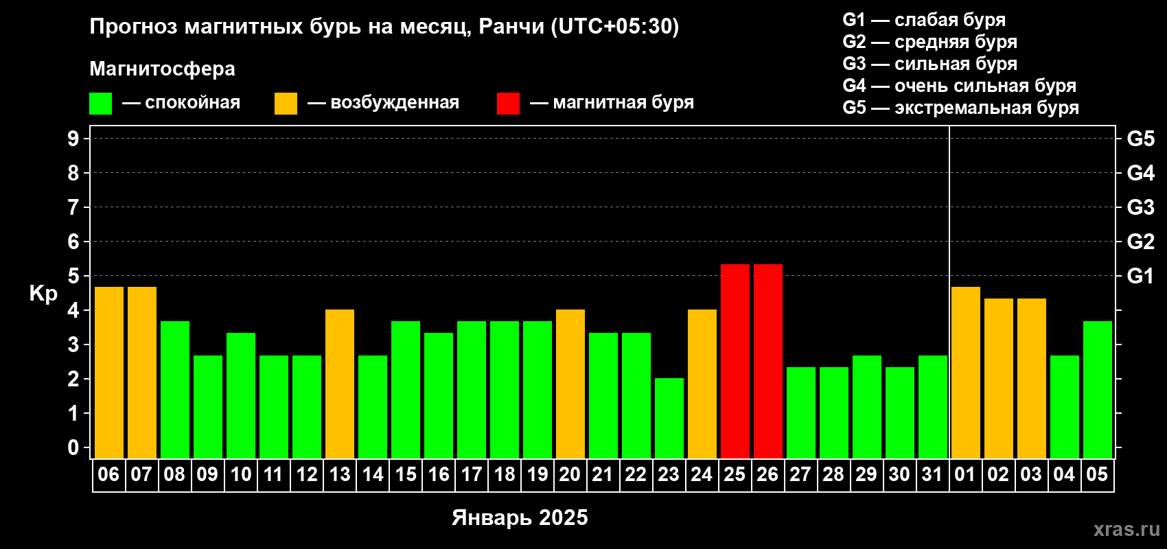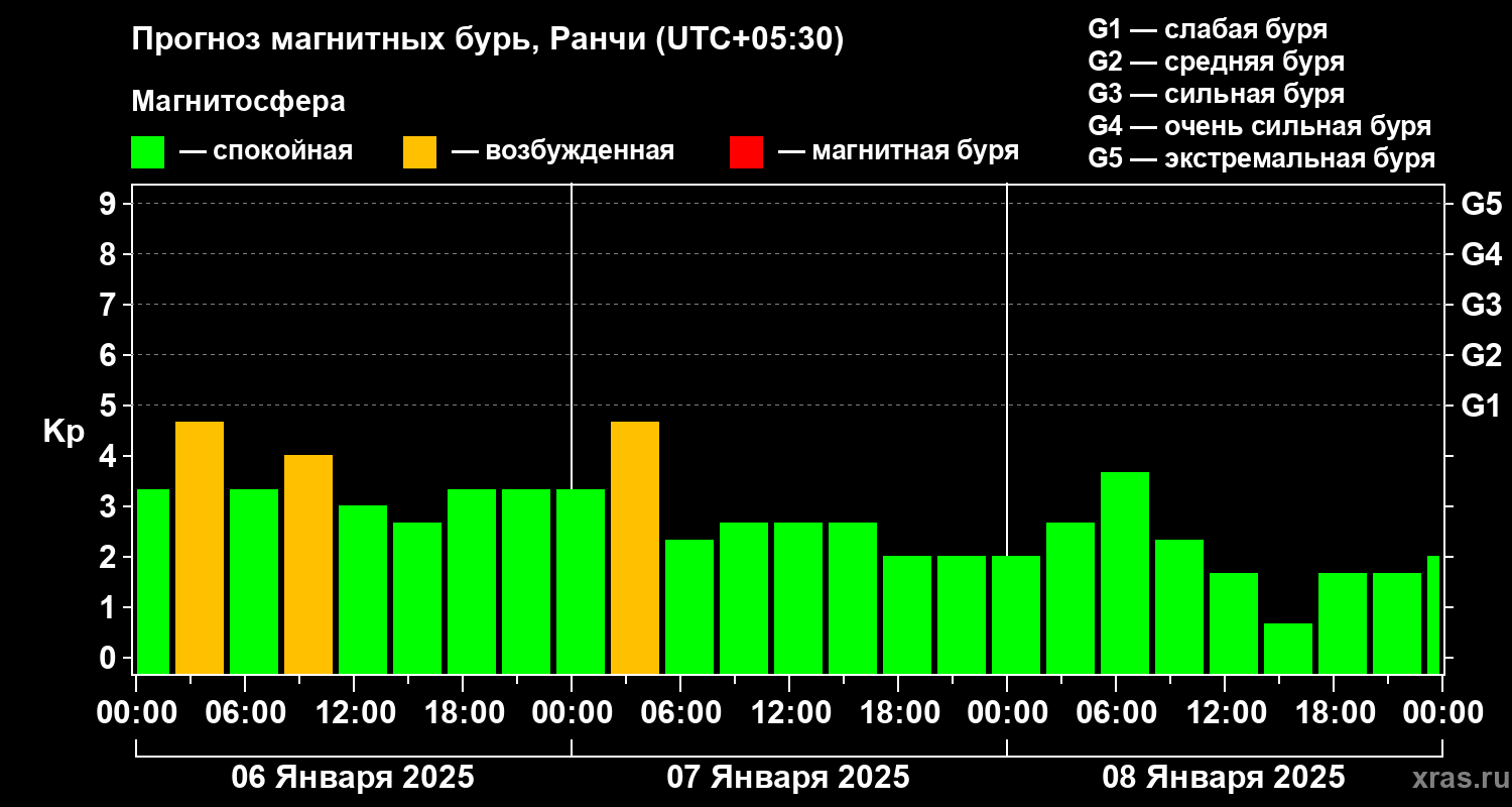 Прогноз магнитных бурь Ранчи на 6 января 2025 года