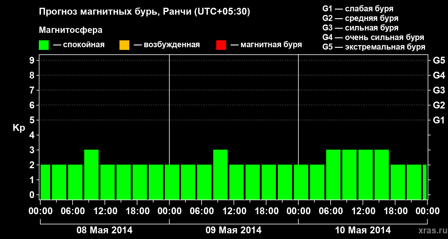 Прогноз магнитных бурь Ранчи на 8 мая 2014 года