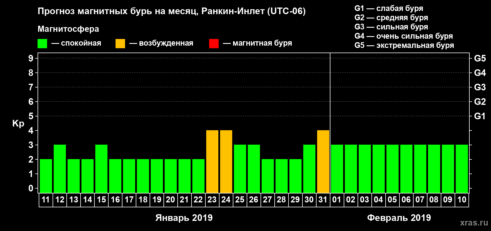 Прогноз магнитных бурь в Ранкин-Инлете — 11 января 2019 года