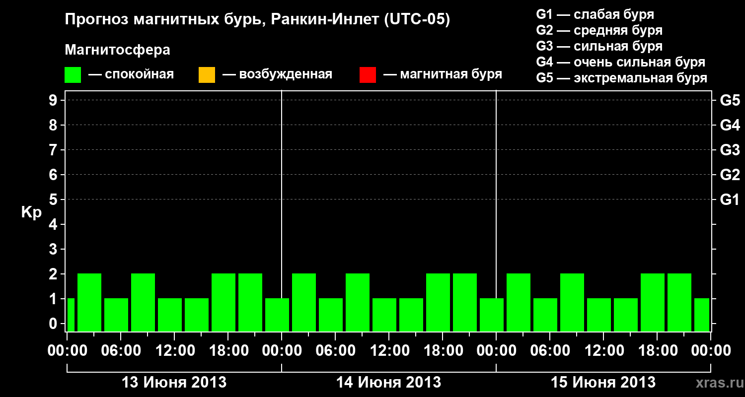 Прогноз магнитных бурь в Ранкин-Инлете — 13 июня 2013 года