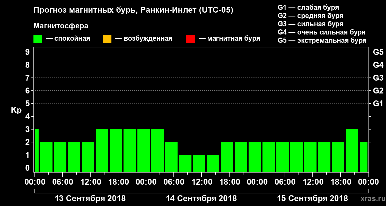 Прогноз магнитных бурь в Ранкин-Инлете на 13 сентября 2018 года