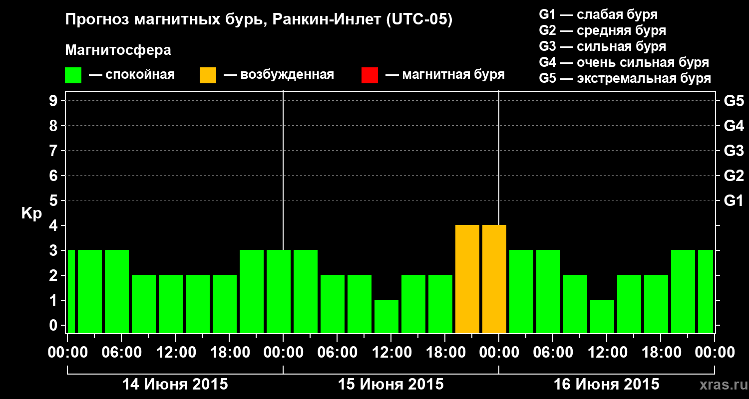 Прогноз магнитных бурь в Ранкин-Инлете — 14 июня 2015 года