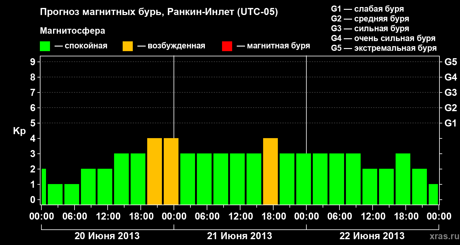 Прогноз магнитных бурь в Ранкин-Инлете — 20 июня 2013 года
