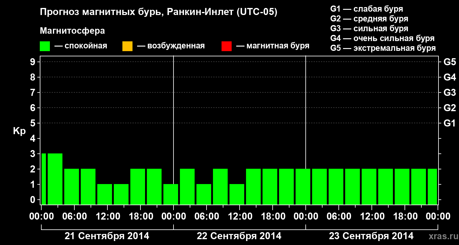 Прогноз магнитных бурь в Ранкин-Инлете — 21 сентября 2014 года