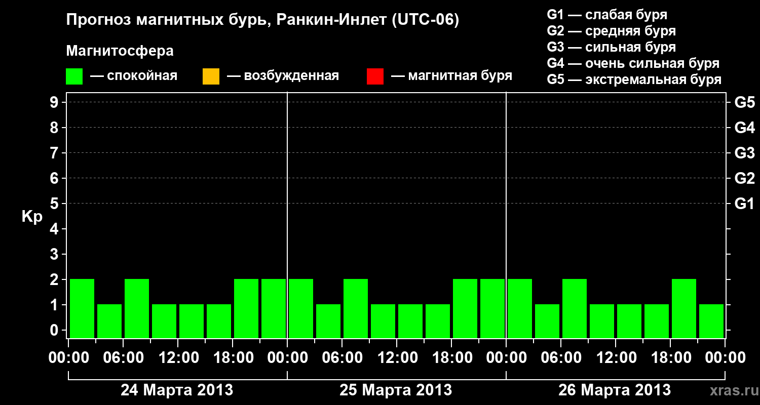 Прогноз магнитных бурь в Ранкин-Инлете — 24 марта 2013 года