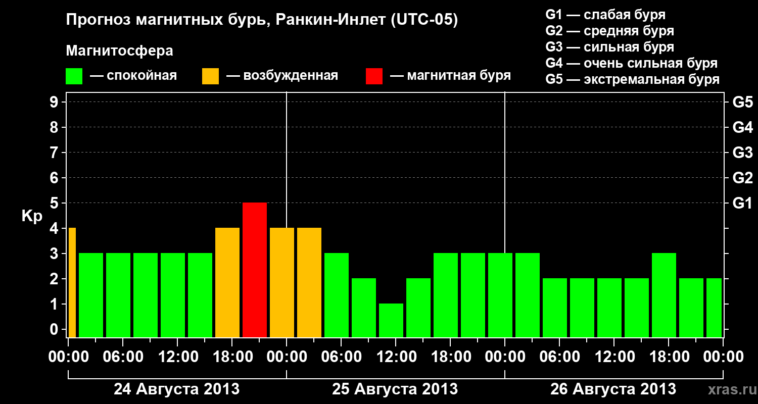 Прогноз магнитных бурь в Ранкин-Инлете — 24 августа 2013 года