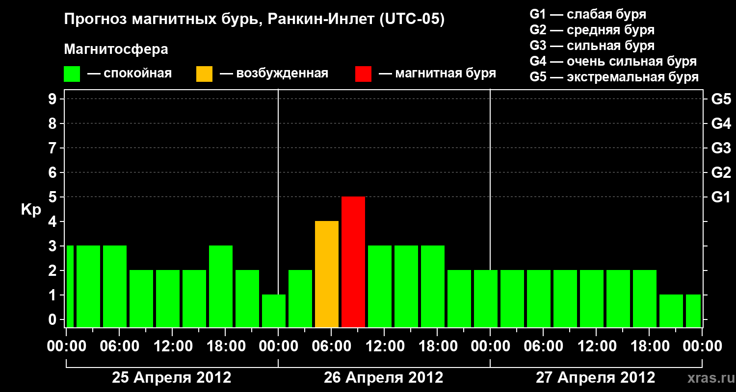 Прогноз магнитных бурь в Ранкин-Инлете на 25 апреля 2012 года