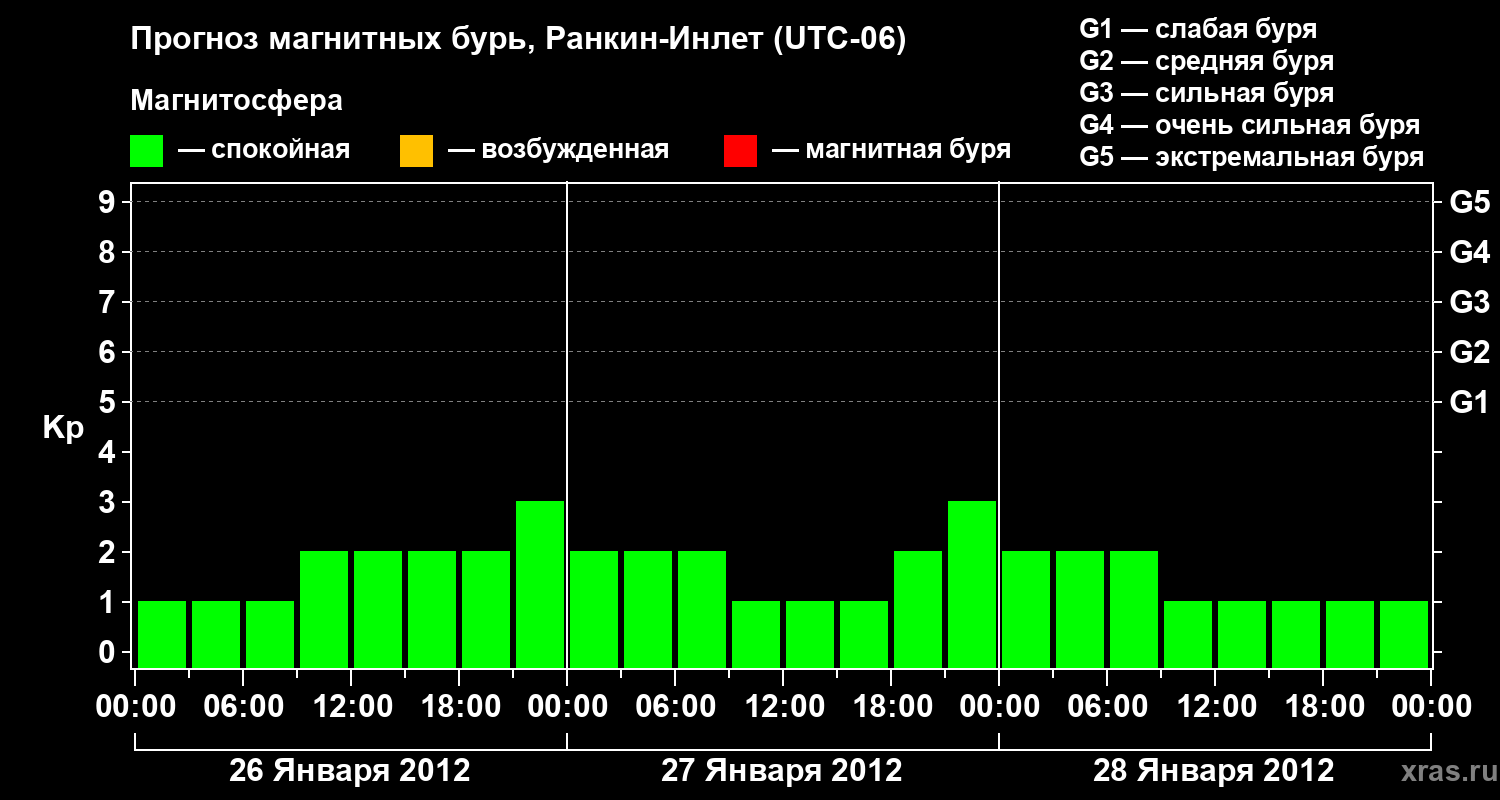 Прогноз магнитных бурь в Ранкин-Инлете — 26 января 2012 года