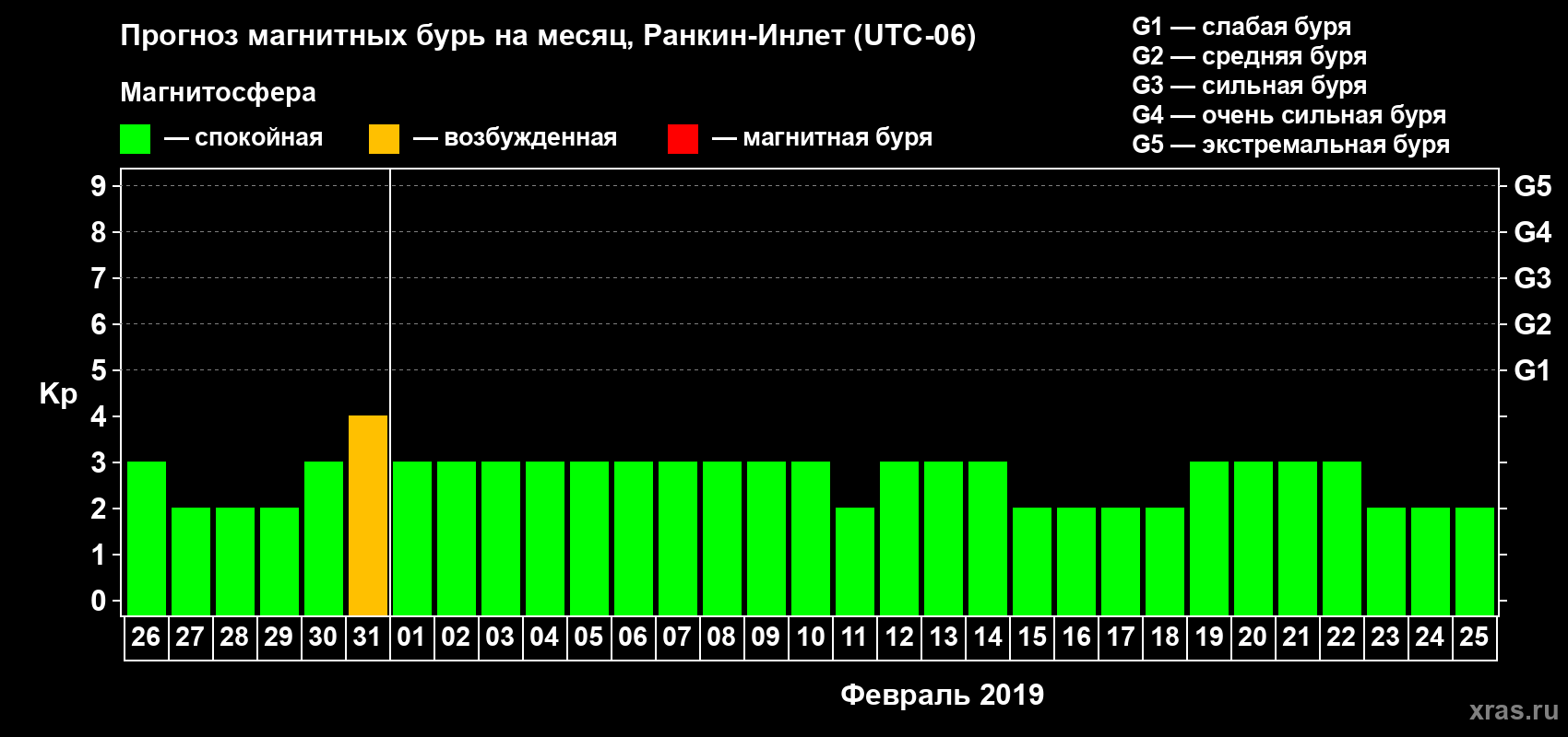Прогноз магнитных бурь в Ранкин-Инлете — 26 января 2019 года