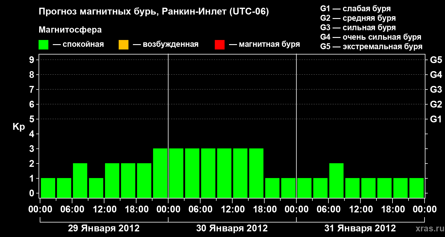Прогноз магнитных бурь в Ранкин-Инлете — 29 января 2012 года