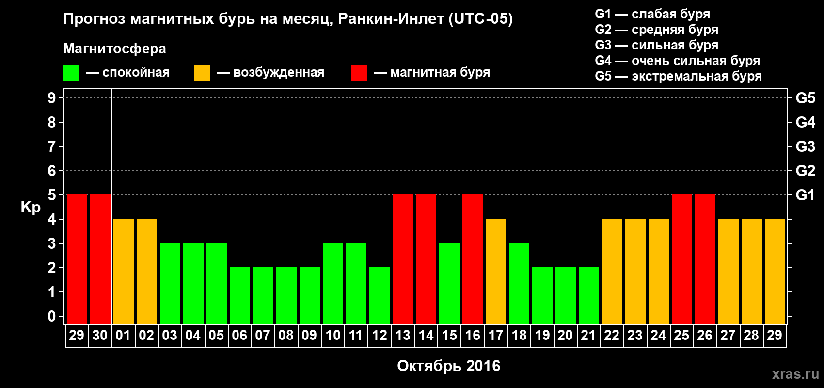 Прогноз магнитных бурь в Ранкин-Инлете — 29 сентября 2016 года