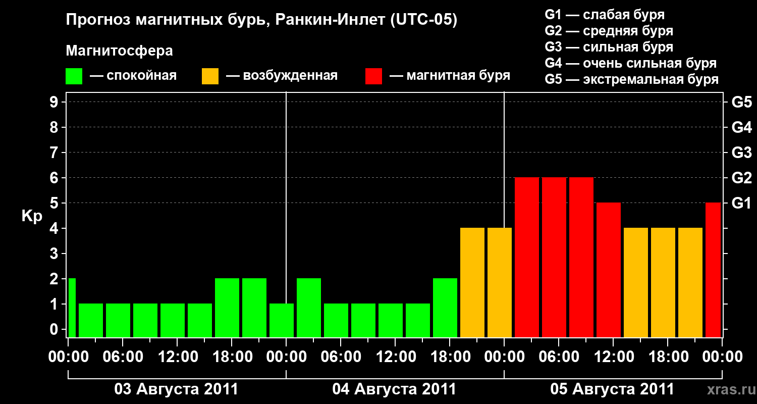 Прогноз магнитных бурь в Ранкин-Инлете — 3 августа 2011 года
