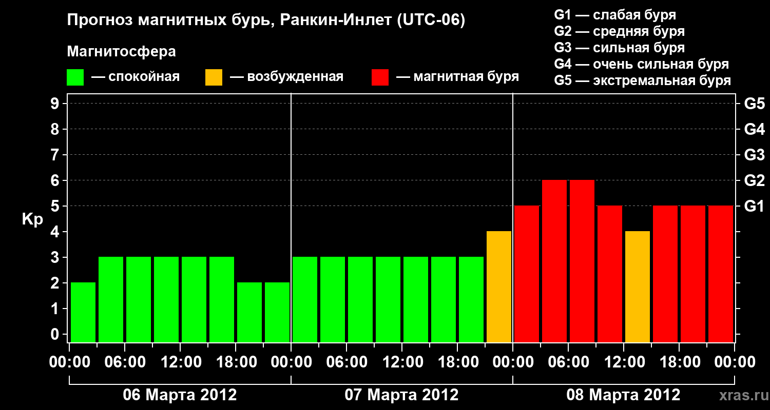 Прогноз магнитных бурь в Ранкин-Инлете — 6 марта 2012 года