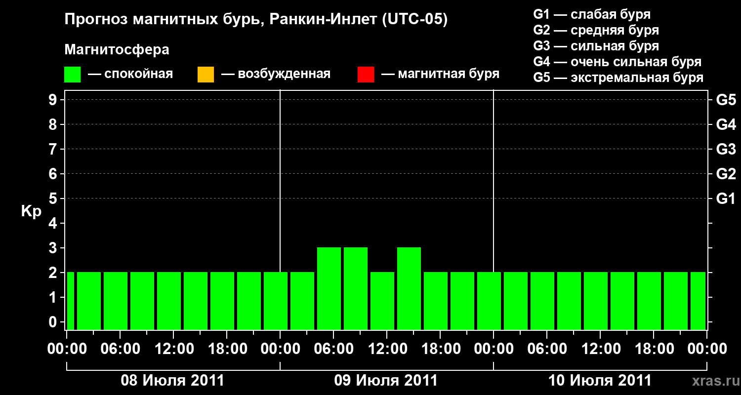 Прогноз магнитных бурь в Ранкин-Инлете — 8 июля 2011 года
